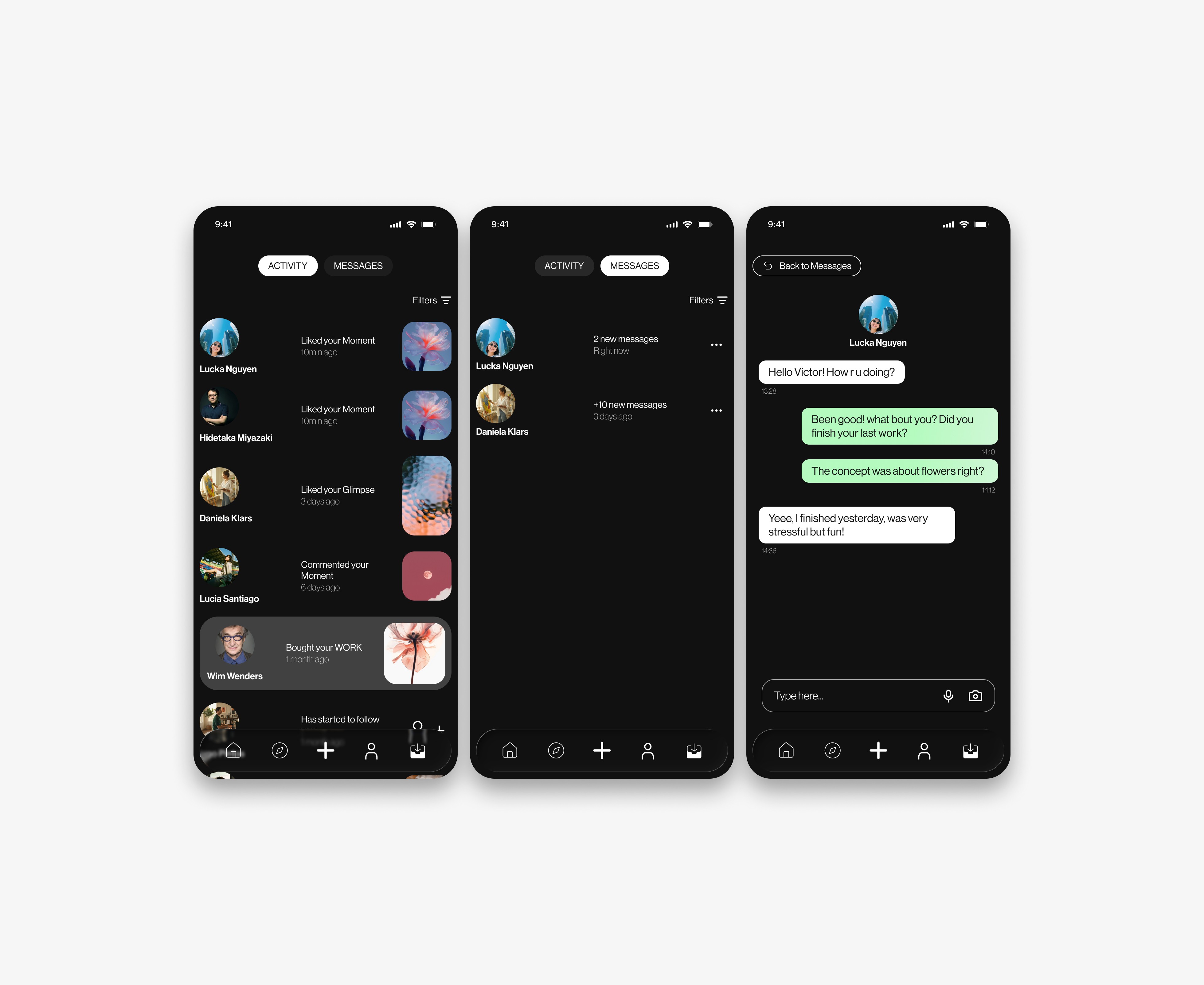 Designing an interface for artists carries a unique responsibility: the app's design (UI) must not compete with the user content. The challenge was to create an invisible and neutral "digital canvas." The complexity lay in balancing very diverse formats: immersive vertical videos (Reels), high-resolution static galleries, and tickets with QR codes. I needed to create a visual hierarchy that would allow the user to seamlessly shift their mindset—from viewer to buyer and from buyer to attendee—without losing aesthetic coherence.