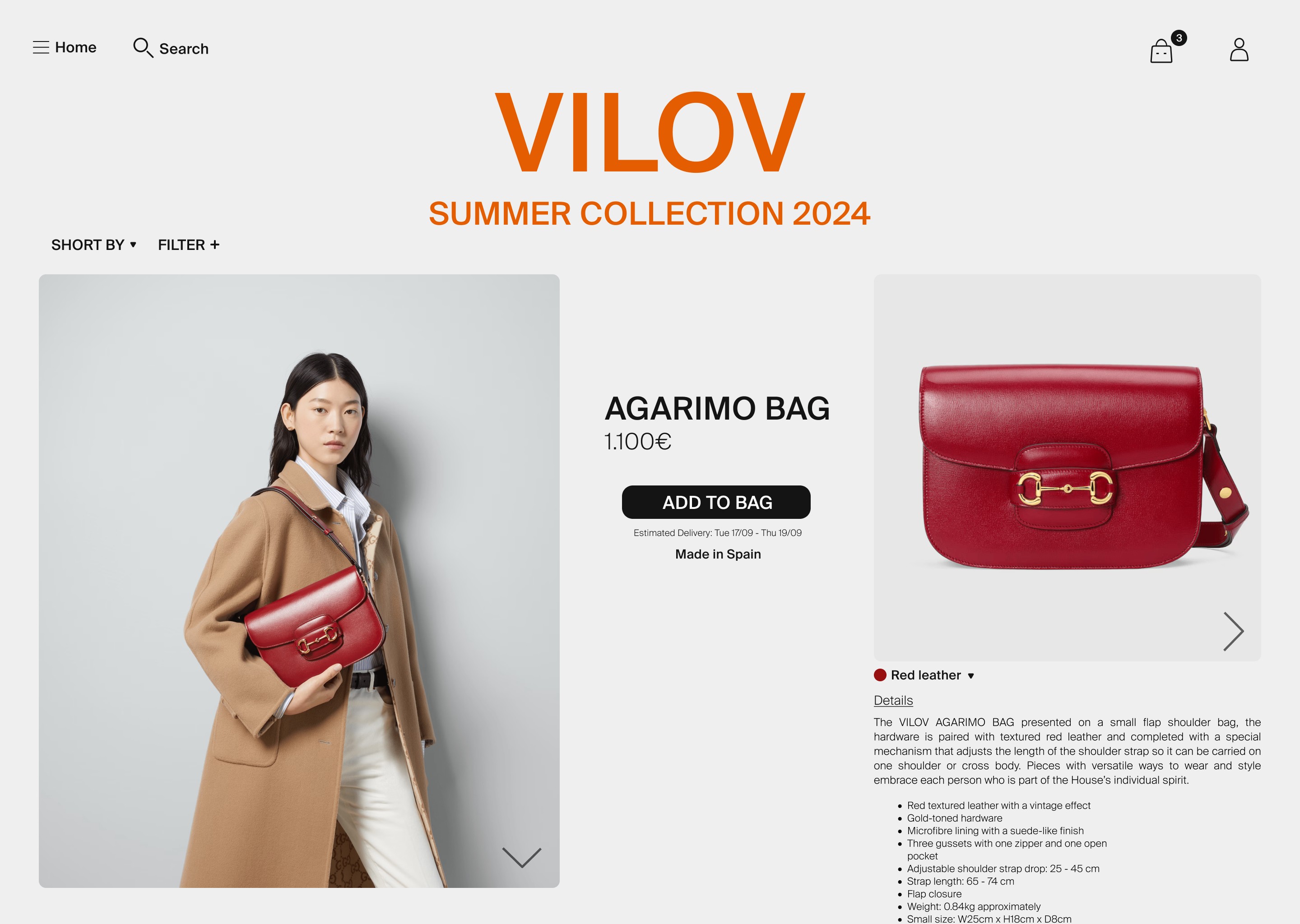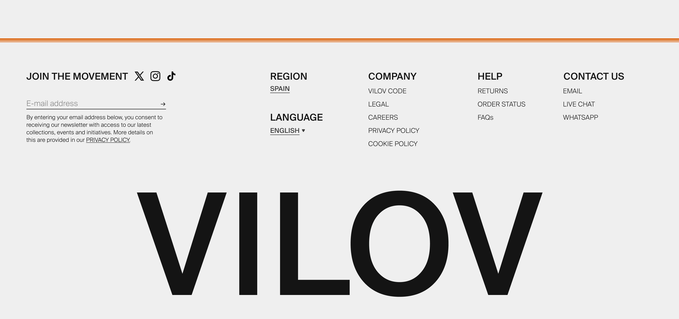 To bring VILOV to life, a minimalist yet distinctive structure was developed, centered around the following pillars: Visual Brand Impact: The use of oversized typography and a burnt orange color palette establishes a strong identity right from the website's opening. E-commerce Editorial Design: Product pages were designed with a fashion magazine feel, using high-quality photography and a clean layout of technical details. Premium Conversion Flow: The purchase process was optimized for maximum fluidity, eliminating distractions and utilizing a well-spaced and elegant form design. Intuitive Navigation: The implementation of filtering and categorization systems allows users to explore the collection organically and visually. Trusted Details: The inclusion of a detailed, informative footer with sections for customer service, privacy policies, and direct contact channels such as WhatsApp reinforces the brand's approachability.